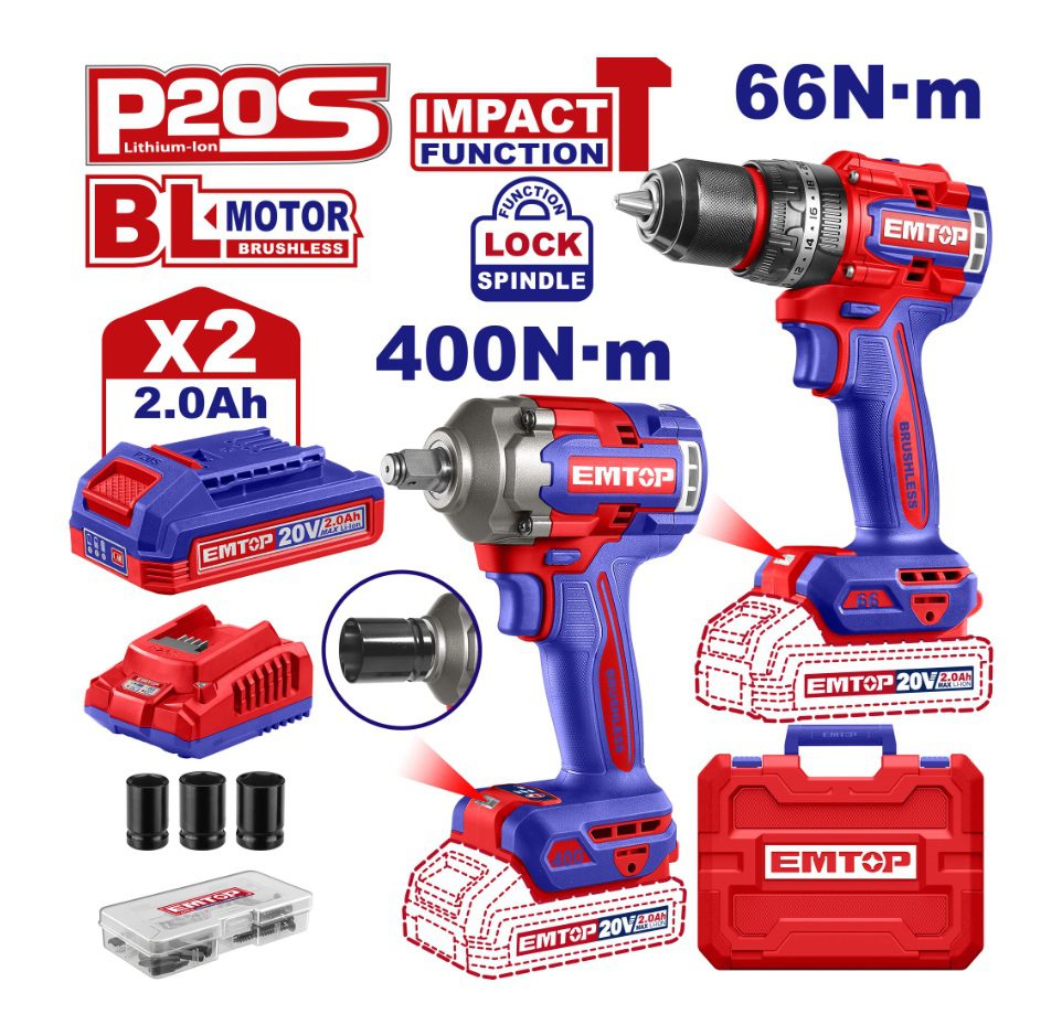 Combo Talad.imp.atornillador 66Nm + Llave Imp.1/2 400Nm Emtop Eckl20275-4