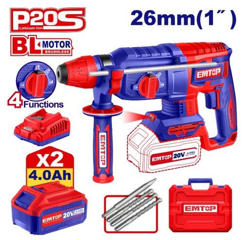 Rotomartillo inalámbrico 20V 1" 26 MM + 2 Baterías 4.0 AH + cargador + accesorios