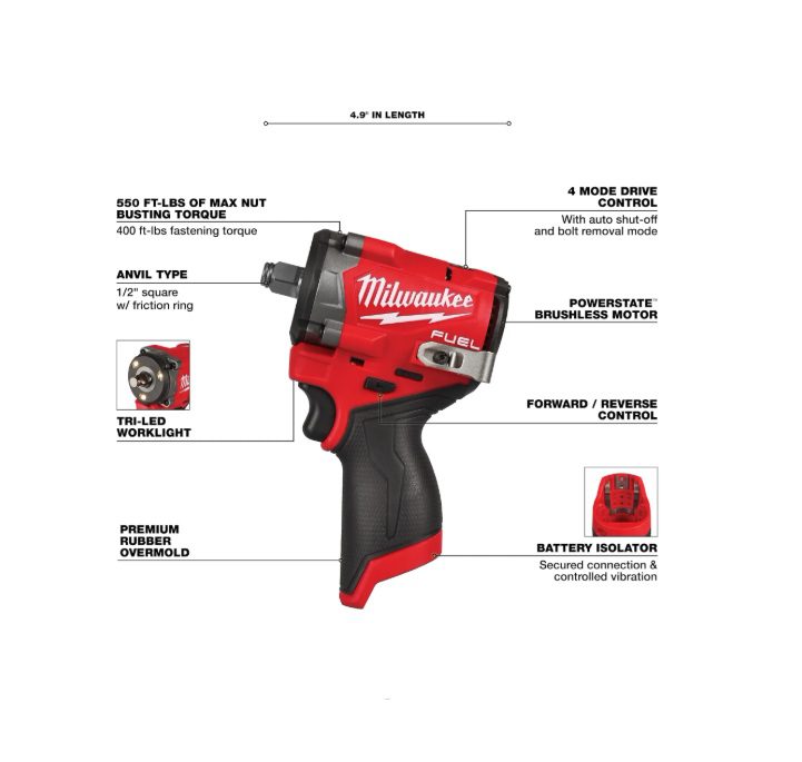 Llave de impacto corta M12 FUEL™ de 1/2" Milwaukee 2563