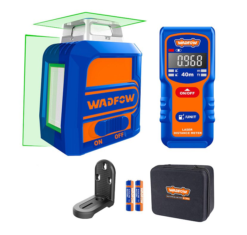 Combo Kit Nivel Láser 5 líneas recargable verde 30 M + Medidor distancia laser 40 M WADFOW