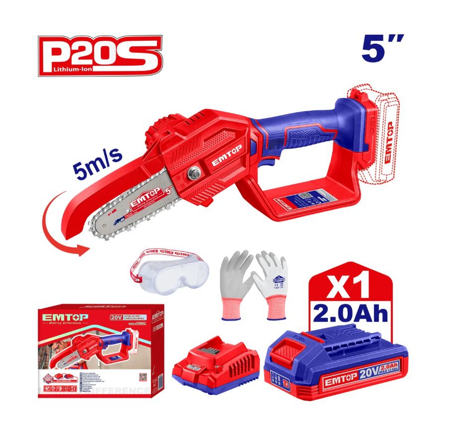 Motosierra inalambrica 5" 20v + Bat 2.0ah + Cargador