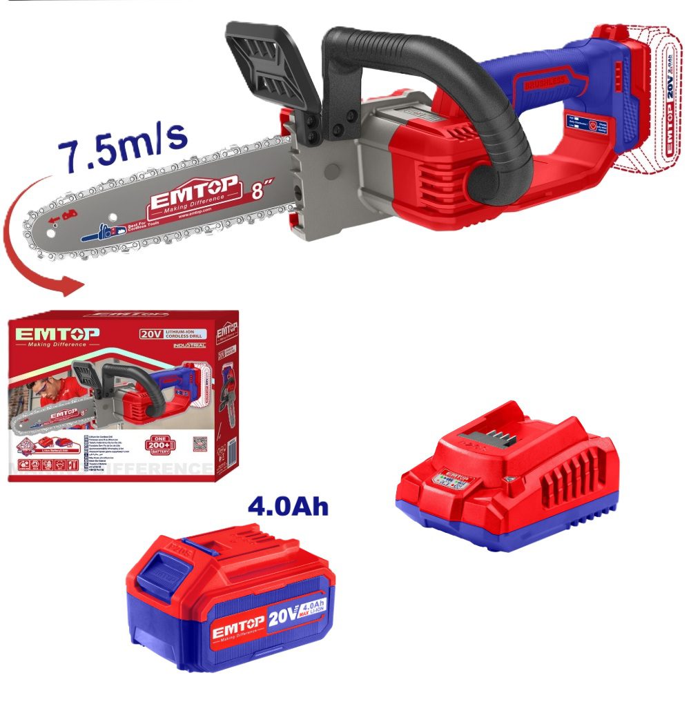 Motosierra 8" bl 20v emtop ELGA2085 + Bateria 4amp + cargador