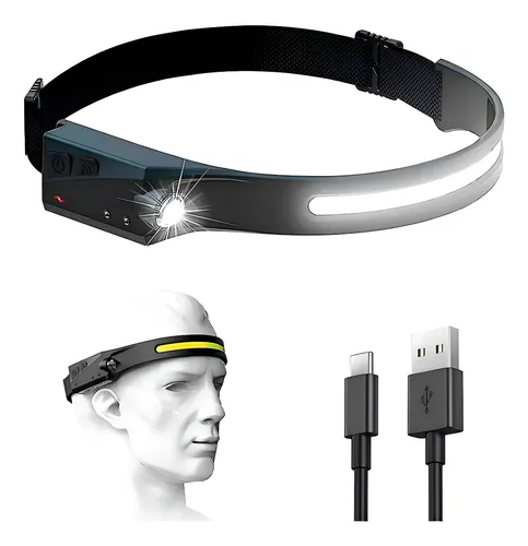 Linterna Vincha Ajustable con Sensor de Movimiento Recargable USB