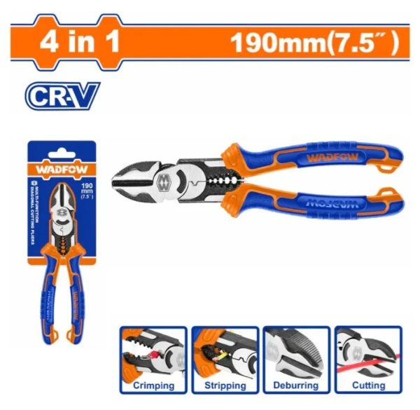 Alicate diagonal combinado multifunción 4 en 1 -7.5″ 190mm WADFOW WPL3778