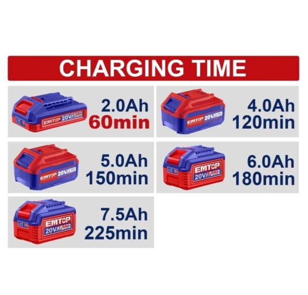 Cargador 20v bateria 2-4-5 amp EMTOP efcr20200-4