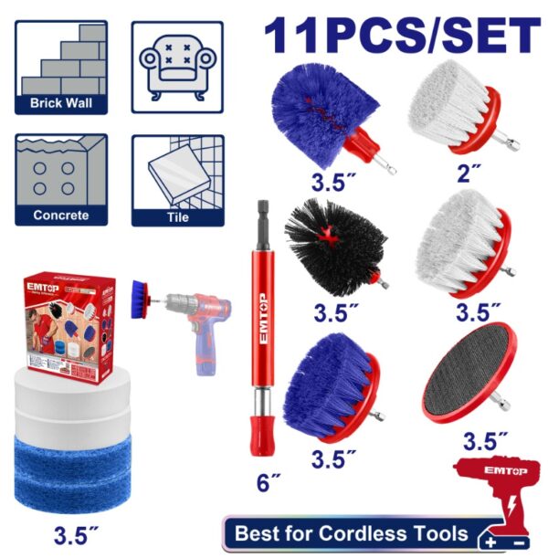 Cepillos Y Pads Abrasivos Set 11 Pzs Detailing Emtop Ecb1101