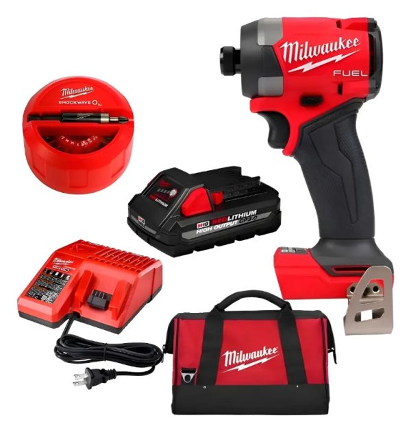 Combo Atornillador De Impacto Milwaukee M18 Fuel + Cargador Doble Batería 18v 12v y Batería M18 3Ah + Bolso y kit de puntas 2953