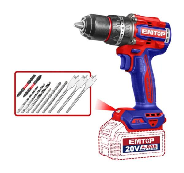 Combo Titan Llave impacto Emtop 850nm + Taladro perc 20v Emtop + 2 Bat 4amp + Accesorios