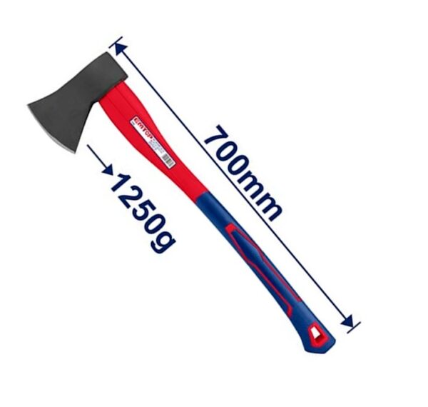 El modelo es similar al Total EHAMAX1250, conocido por su durabilidad y rendimiento. El mango de fibra de vidrio no solo es resistente, sino que también absorbe los impactos, reduciendo la fatiga del usuario. Además, el hacha viene con una manija, lo que facilita su transporte y almacenamiento.