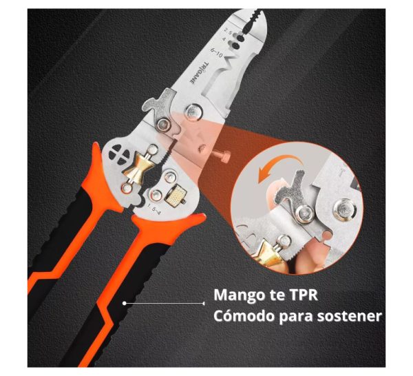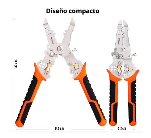 Este pelacables multifuncional es adecuado para diferentes tipos y tamaños de cables. Ya sea que estés realizando instalaciones eléctricas, reparaciones de automóviles o proyectos de bricolaje, el pelacables es tu herramienta definitiva para lograr resultados eficientes en todo momento.