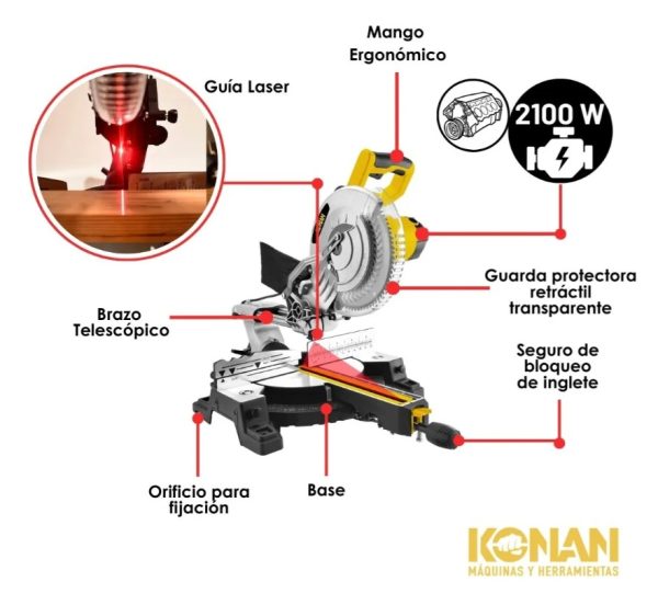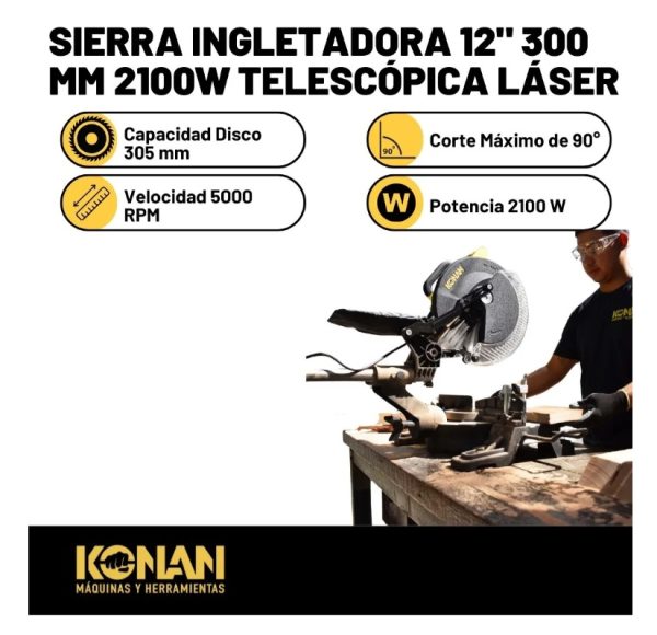 Sierra Ingletadora 12″ 300 Mm 2100W Telescópica Láser